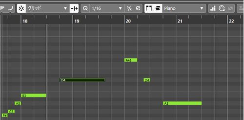 はおう丸です。最近、Cubase10を使っていて、おかしいなーって思うことがあって、グリッド幅を1/16 (16分音符刻み)にしてるはずなのに、下画像のように、1/4 (4分音符刻み)になるんです。(例えば19小節目と20小節目が、設定では16分割にならないとおかし…
